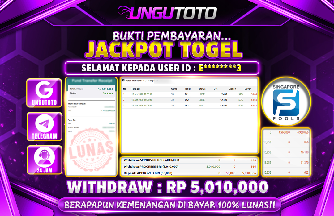 UNGUTOTO JACKPOT SINGAPORE POOLS Rp.5.010.000 LUNAS