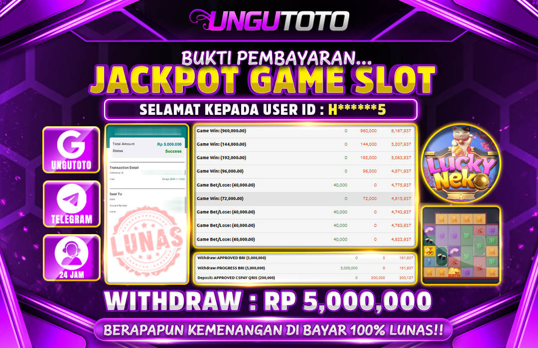 UNGUTOTO JACKPOT LUCKY NEKO Rp.5.000.000 LUNAS