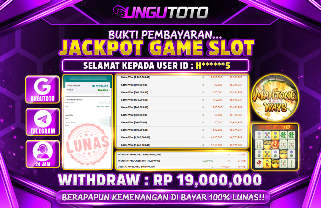 UNGUTOTO JACKPOT MAHJONG WAYS Rp.19.000.000 LUNAS