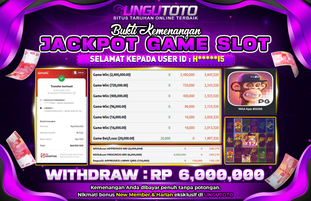 UNGUTOTO JACKPOT WILD APE Rp.6.000.000 LUNAS