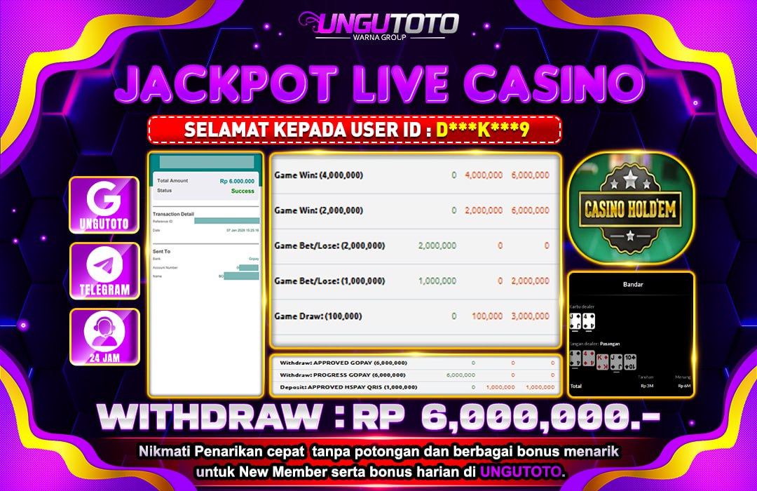 UNGUTOTO JACKPOT LIVE CASINO HOLDEM Rp.6.000.000 LUNAS