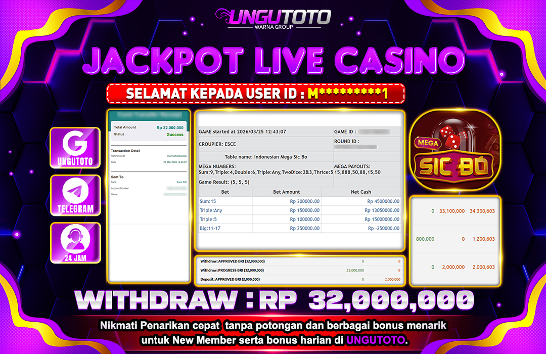 UNGUTOTO JACKPOT MEGA SIC BO Rp.32.000.000 LUNAS
