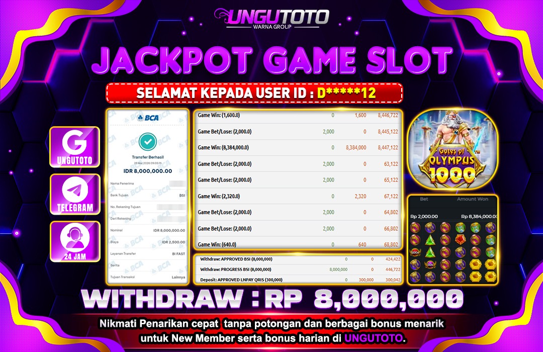 UNGUTOTO JACKPOT GATES OF OLYMPUS 1000 Rp.8.000.000 LUNAS