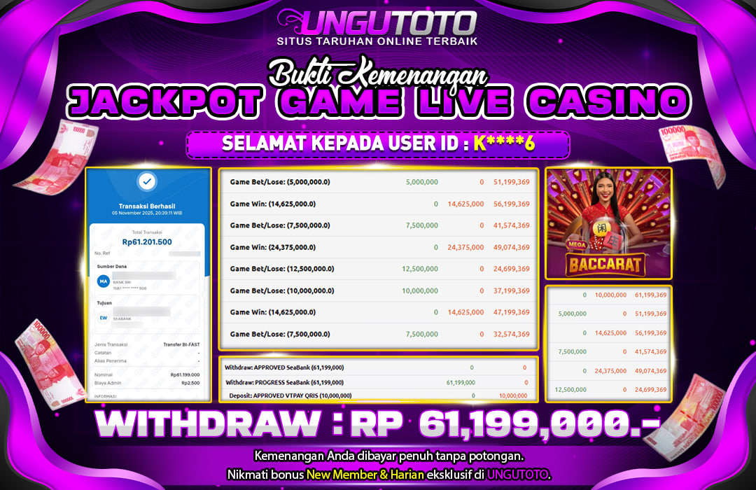 UNGUTOTO JACKPOT MEGA BACCARAT Rp.61.199.000 LUNAS