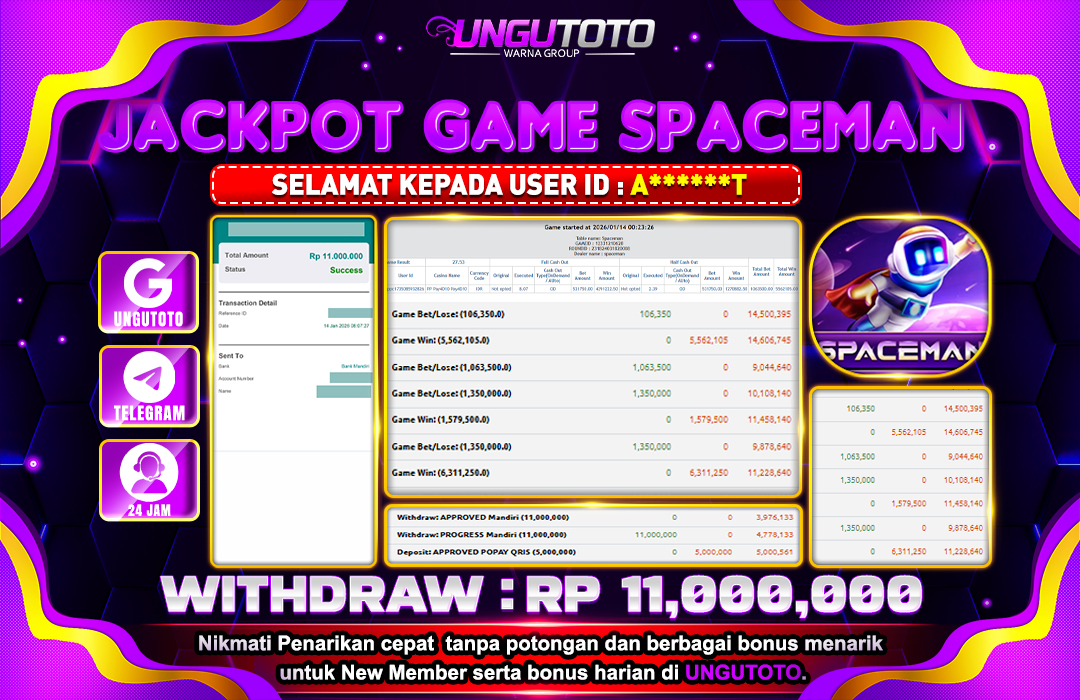 UNGUTOTO JACKPOT LIVE PRAGMATIC SPACEMAN Rp.11.000.000 LUNAS