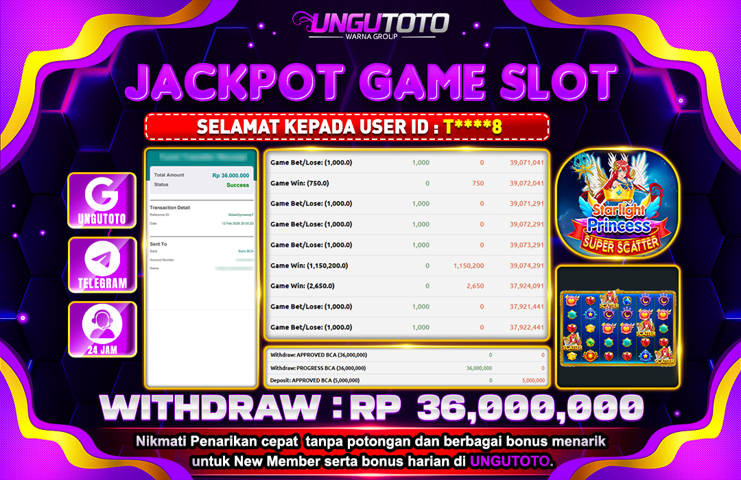 Selamat Kepada Member UNGUTOTO T**** Telah Jackpot Di STARLIGHT PRINCESS SUPER SCATTER