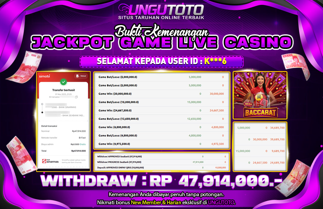 UNGUTOTO JACKPOT MEGA BACCARAT Rp.47.914.000 LUNAS