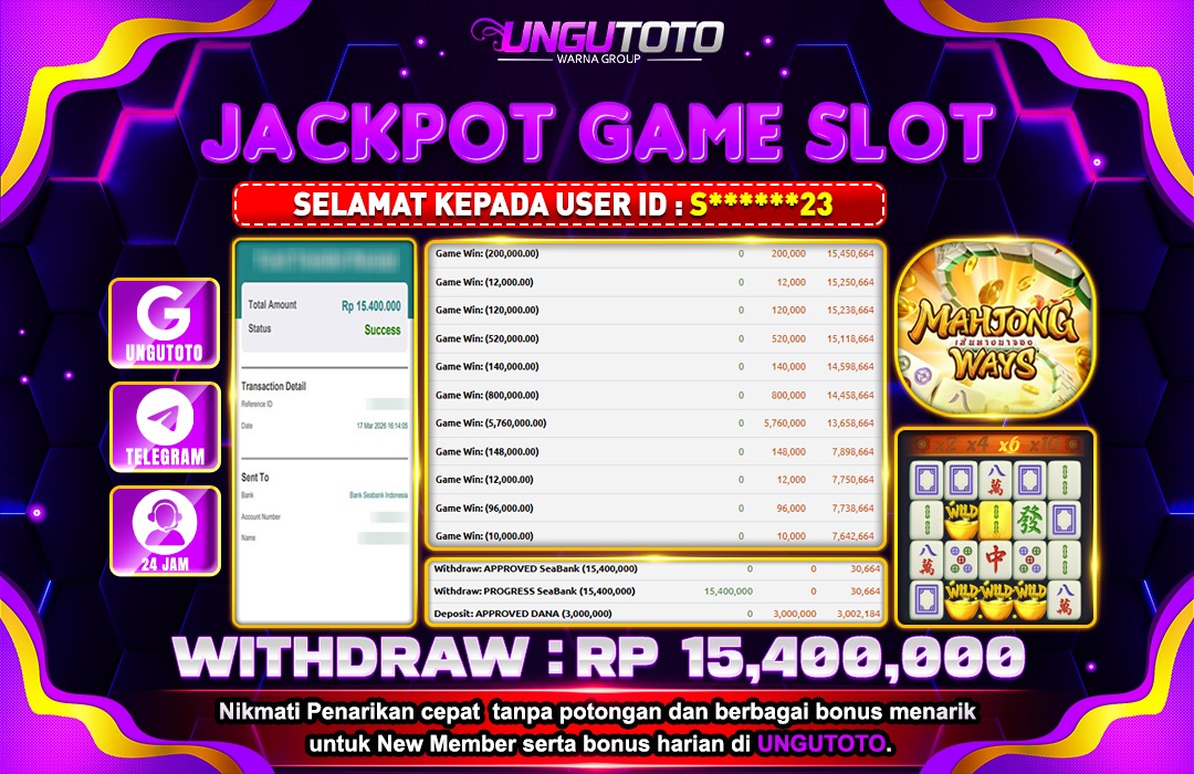 Selamat Kepada Member UNGUTOTO S******23 Telah Jackpot Di MAHJONG WAYS