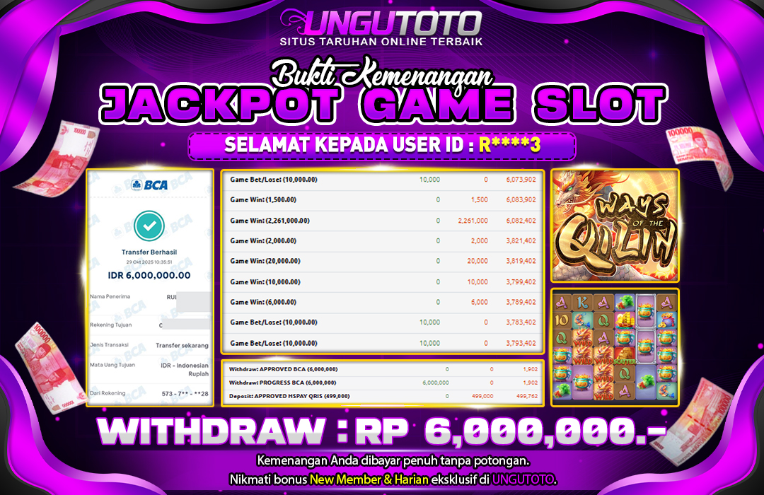 UNGUTOTO JACKPOT GAME SLOT PG SOFT WAYS OF THE QILIN Rp.6.000.000 LUNAS