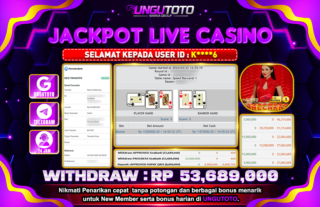 UNGUTOTO JACKPOT SPEED BACCARAT Rp.53.689.000 LUNAS