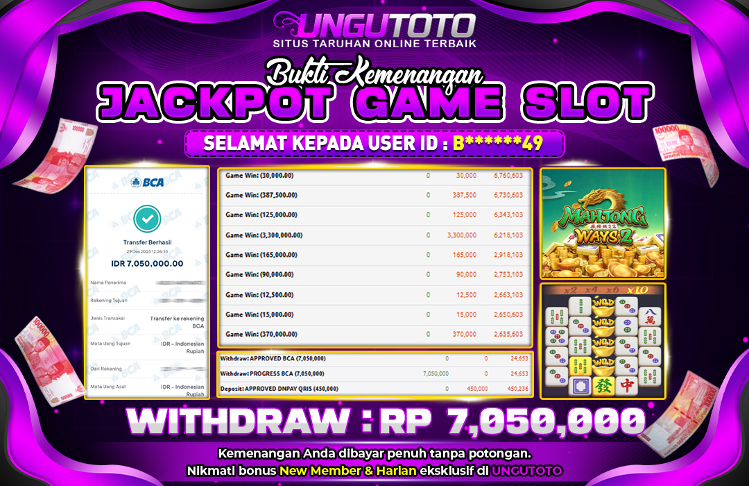 UNGUTOTO JACKPOT MAHJONG WAYS 2 Rp.7.050.000 LUNAS