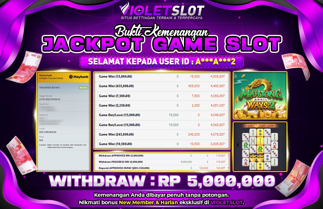 Selamat Kepada Member UNGUTOTO A*******2 Telah Jackpot Di MAHJONG WAYS 2