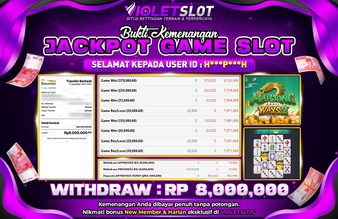 Selamat Kepada Member UNGUTOTO H*******H Telah Jackpot Di MAHJONG WAYS 2