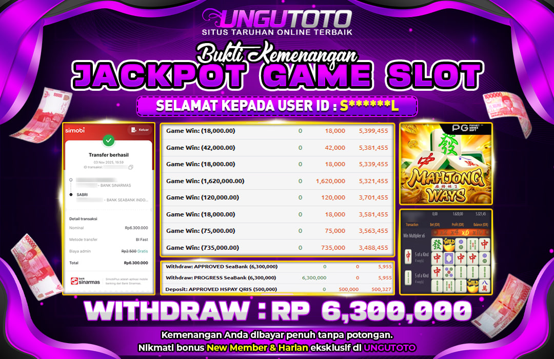 UNGUTOTO JACKPOT MAHJONG WAYS Rp.6.300.000 LUNAS