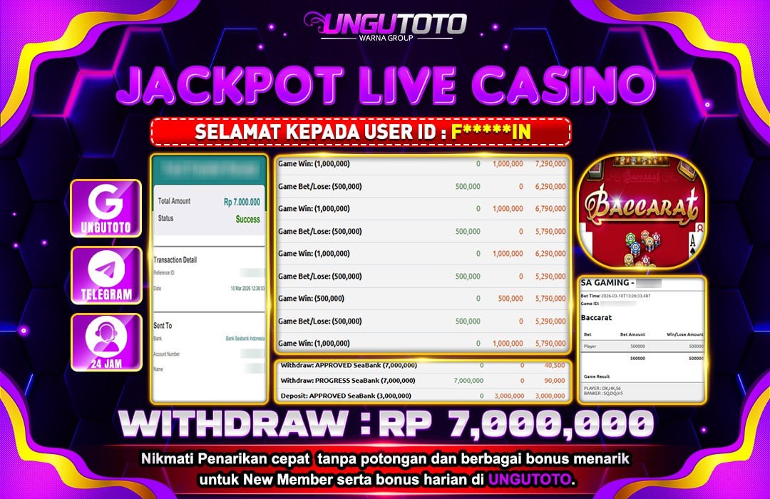 UNGUTOTO JACKPOT LIVE CASINO BACCARAT Rp.7.000.000 LUNAS
