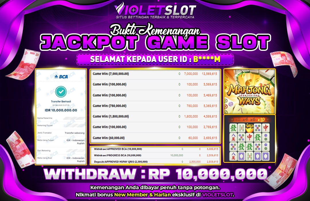 🎉 Selamat untuk USER ID: B******3 yang sukses membawa pulang Rp.Rp.10.000.000 dari permainan MAHJONG WAYS! 💸