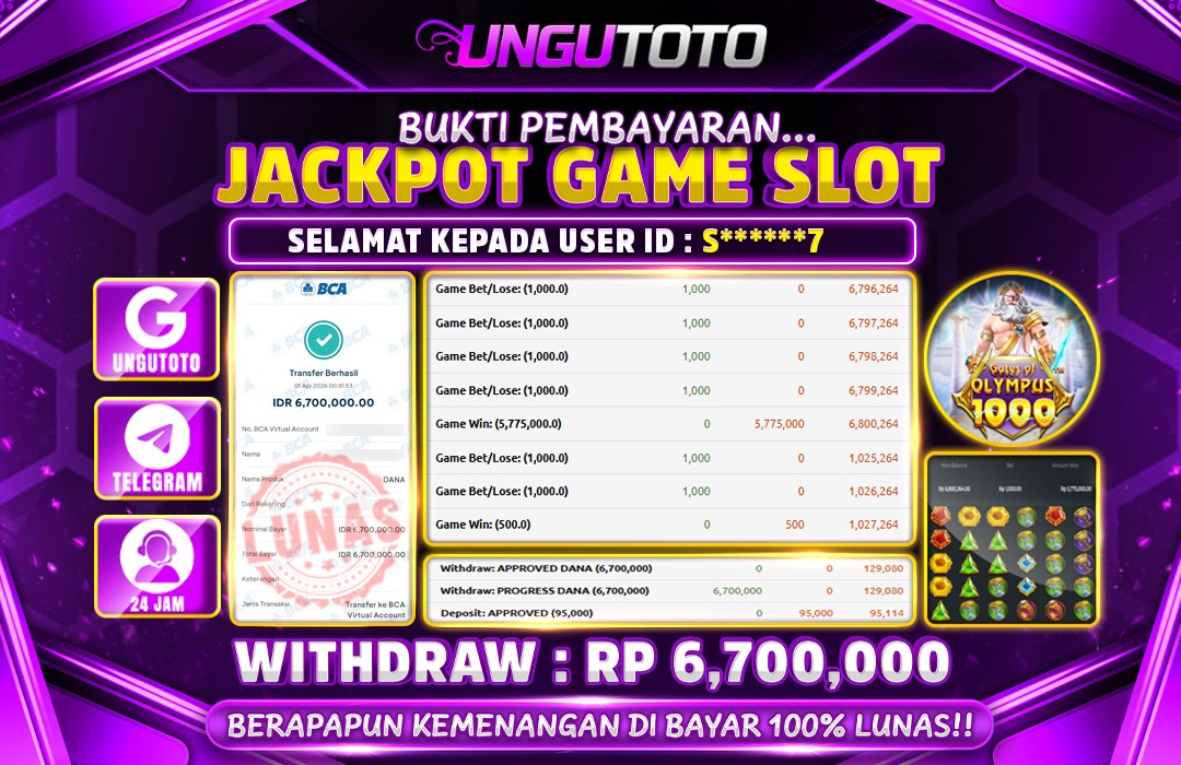 UNGUTOTO JACKPOT GATES OF OLYMPUS 1000 Rp.7.000.000 LUNAS