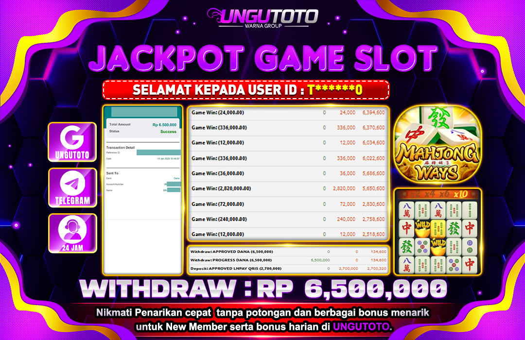 UNGUTOTO JACKPOT SLOT PG SOFT MAHJONG WAYS Rp.6.500.000 LUNAS