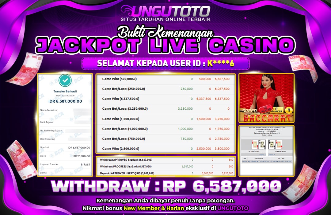 UNGUTOTO JACKPOT LIVE CASINO ION BACARAT Rp.16.150.000 LUNAS