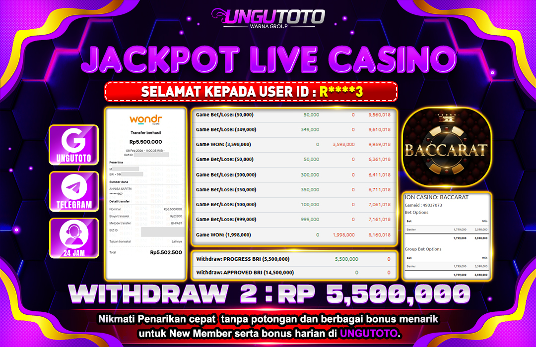 UNGUTOTO JACKPOT ION CASINO BACCARAT Rp.5.500.000 LUNAS
