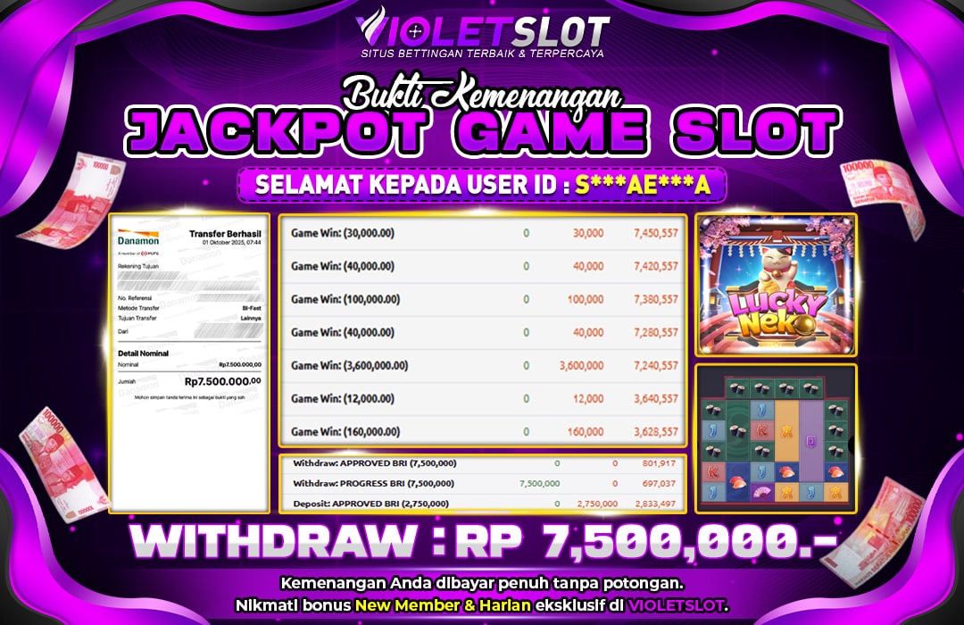 UNGUTOTO JACKPOT LUCKY NEKO Rp.7.500.000 LUNAS